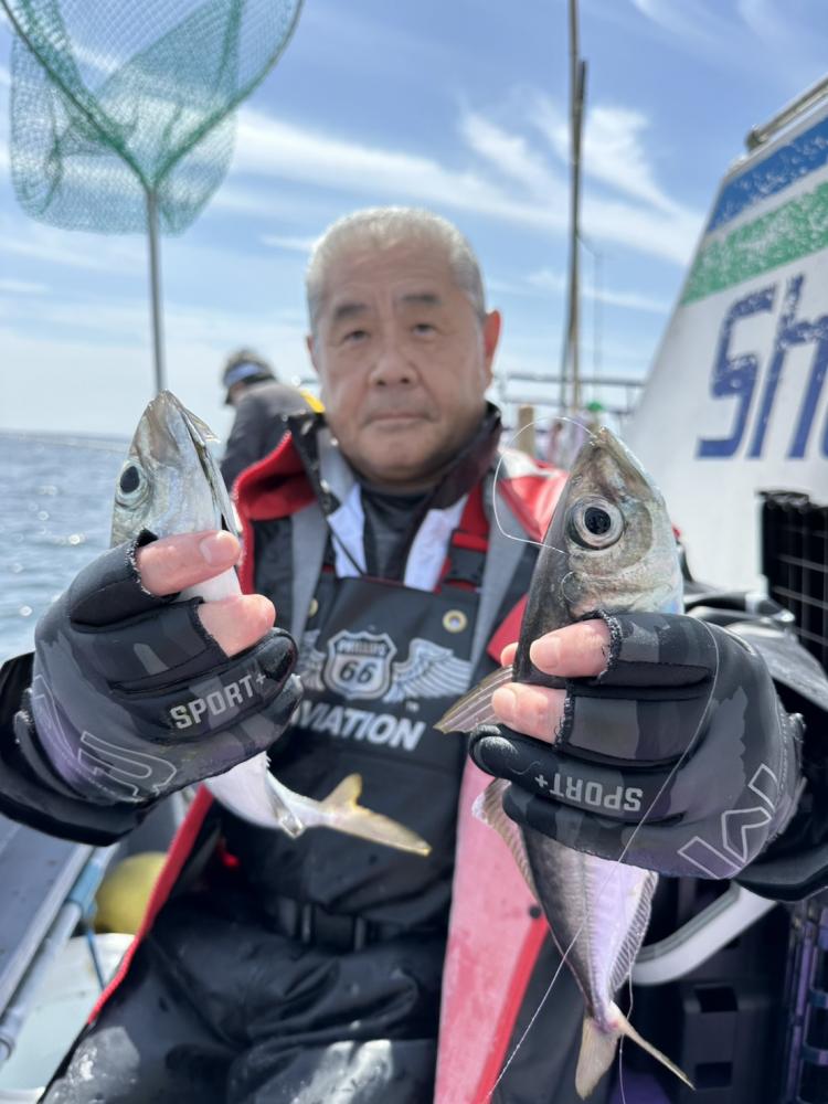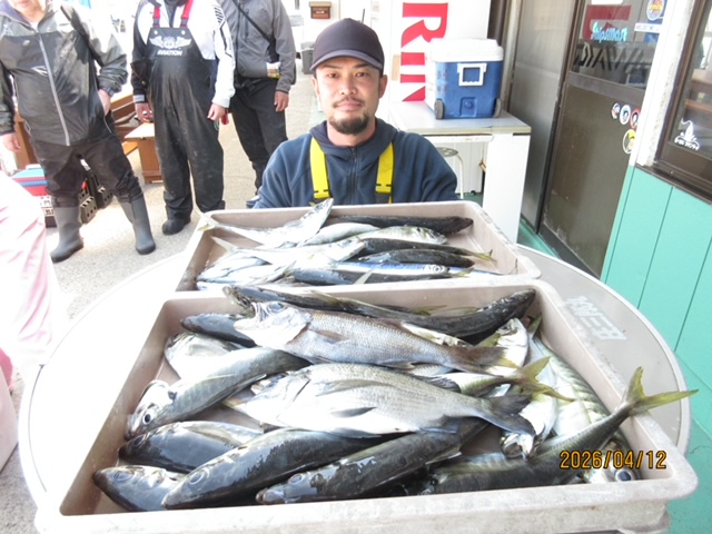 南西の風早上がりになりました、朝のエサ釣りはイワシ・アジのミックス、シコイワシもズラズラくる場面もありますが 投入が遅いと間に合わない雰囲気です、