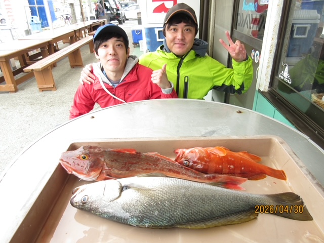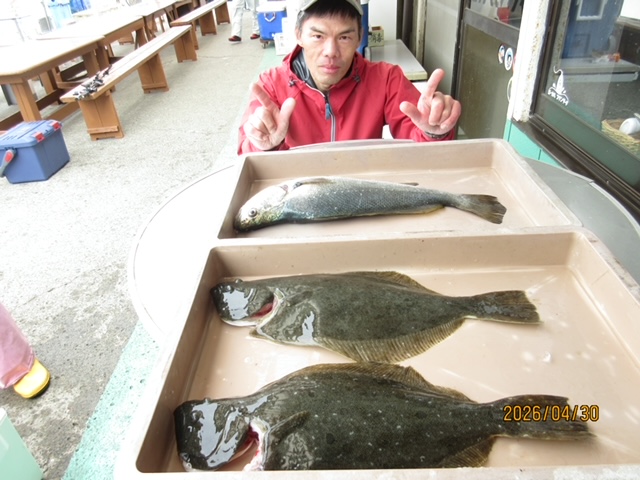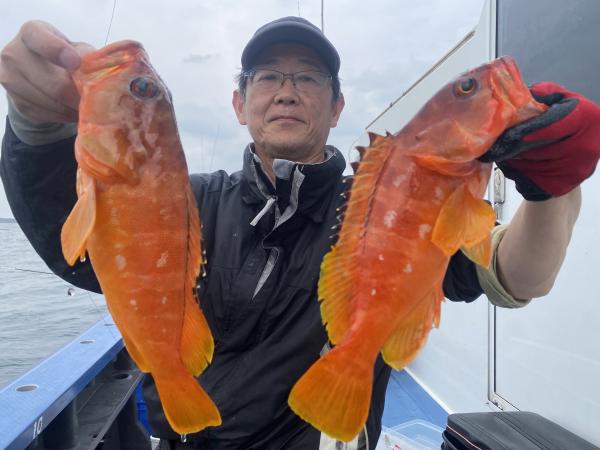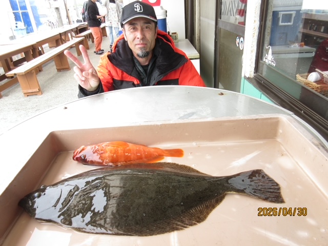 アカハタ 最大 40cm 5〜8尾、カサゴ、イナダ、マトウダイ、ヒラメは小型でした