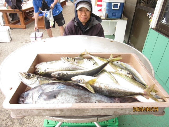朝はイワシ釣りからのスタート チャレンジお待ちしています、尚、ゴールデンウィーク期間中は予約をお願いします、釣行が決まりましたら 早めのご予約を よろしくお願いします