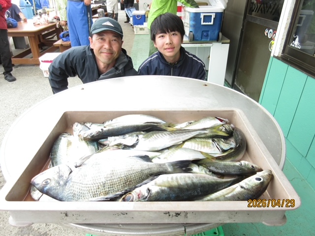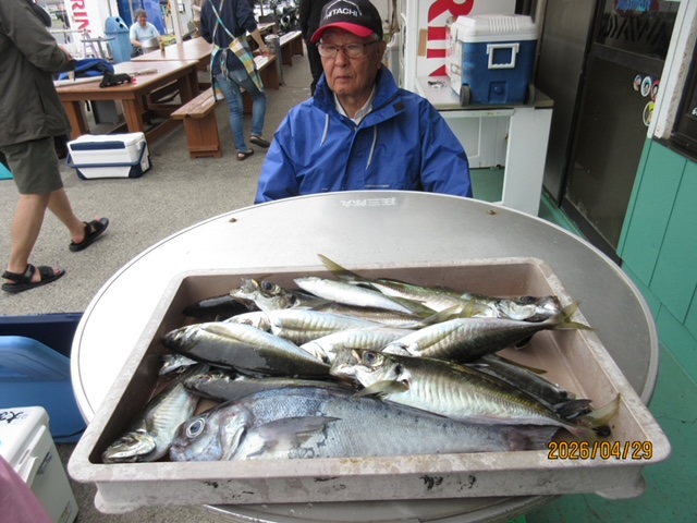 明日は定休日です、水曜日から出船 予約無しでも大歓迎です、雰囲気上々、スペシャルゲスト多彩に狙っていきましょう、朝はイワシ釣りからのスタートです、お付き合いよろしくお願いします