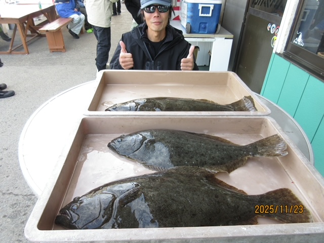 いまいち なかなか付かない状況の中 見事にスペシャルゲストを確保できたお客様も ヒラメ 6枚ゲットもバラシが5回…、マダイ 4.1kg、ワラサ、イナダ、オオモンハタ